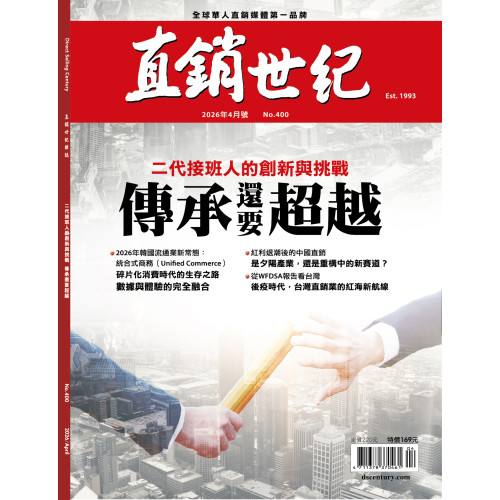 各種組合,在歷經磨合後的融合,讓我們看到上一代直銷先進們的韌性、彈性、努力,更有扶持與放手間的大智慧。也看到二代們用真實體驗去感受直銷業的優勢,然後懷著尊重與感恩,勇敢擔起責任,發揮年輕創意,在傳統與創新間,找到1 + 1 > 2 的平衡。